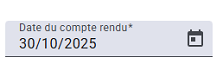 Modifier la date du compte rendu au besoin. Celle-ci doit correspondre à la date de l'EBD. Par défaut, cette date est alimentée avec la date du jour. |
