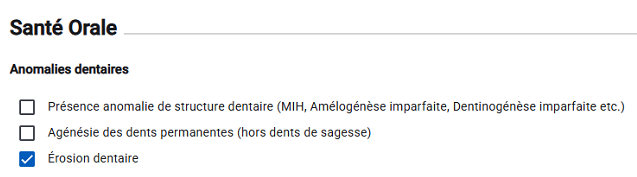 Si un formulaire a déjà été complété dans le passé pour ce patient, le nouveau formulaire sera automatiquement alimenté avec les données du précédent formulaire. Vous effectuerez donc une mise à jour du formulaire. Cela permettra de voir l'évolution des anomalies du patient à travers le temps.