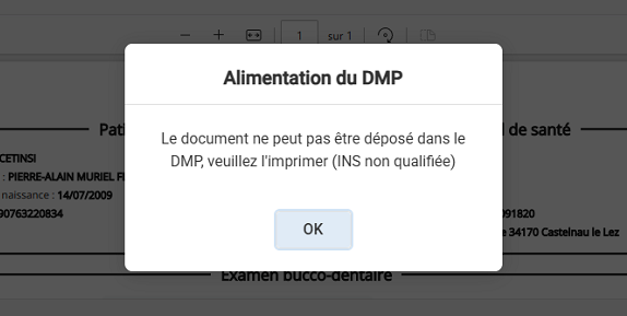 | Si vous n'avez pas qualifié l'INS du patient, un message s'affichera systématiquement vous invitant à imprimer le compte rendu EBD pour le patient. | ![]() |