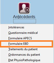 Dans cette version, est livré le formulaire EBD intégré au logiciel JULIE. Cela vous permettra de compléter le compte rendu de l'examen bucco-dentaire sans devoir vous rendre sur l'espace amelipro. Ce formulaire est identique à celui disponible sur amelipro.