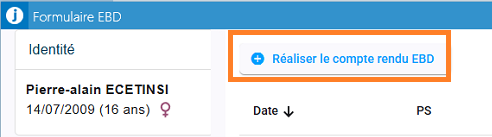 | Pour compléter un nouveau compte rendu, cliquez sur le bouton ''Réaliser le compte rendu EBD'' | ![]() |
