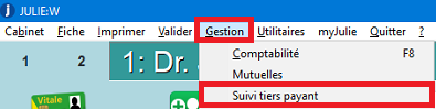 Le module est accessible via le menu ''Gestion'' et ''Suivi tiers payant ''. |