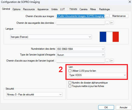 | 2. Dans l'onglet ''Général'', sélectionnez ''Lien Type VDDS'' | ![]() |