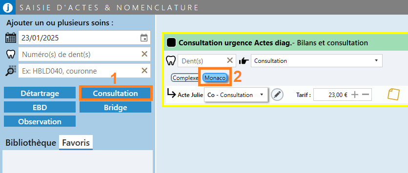 Ajout d'un critère ''Monaco'' permettant de facturer le bon code NGAP ''C'' sur les feuilles de soins monégasques.